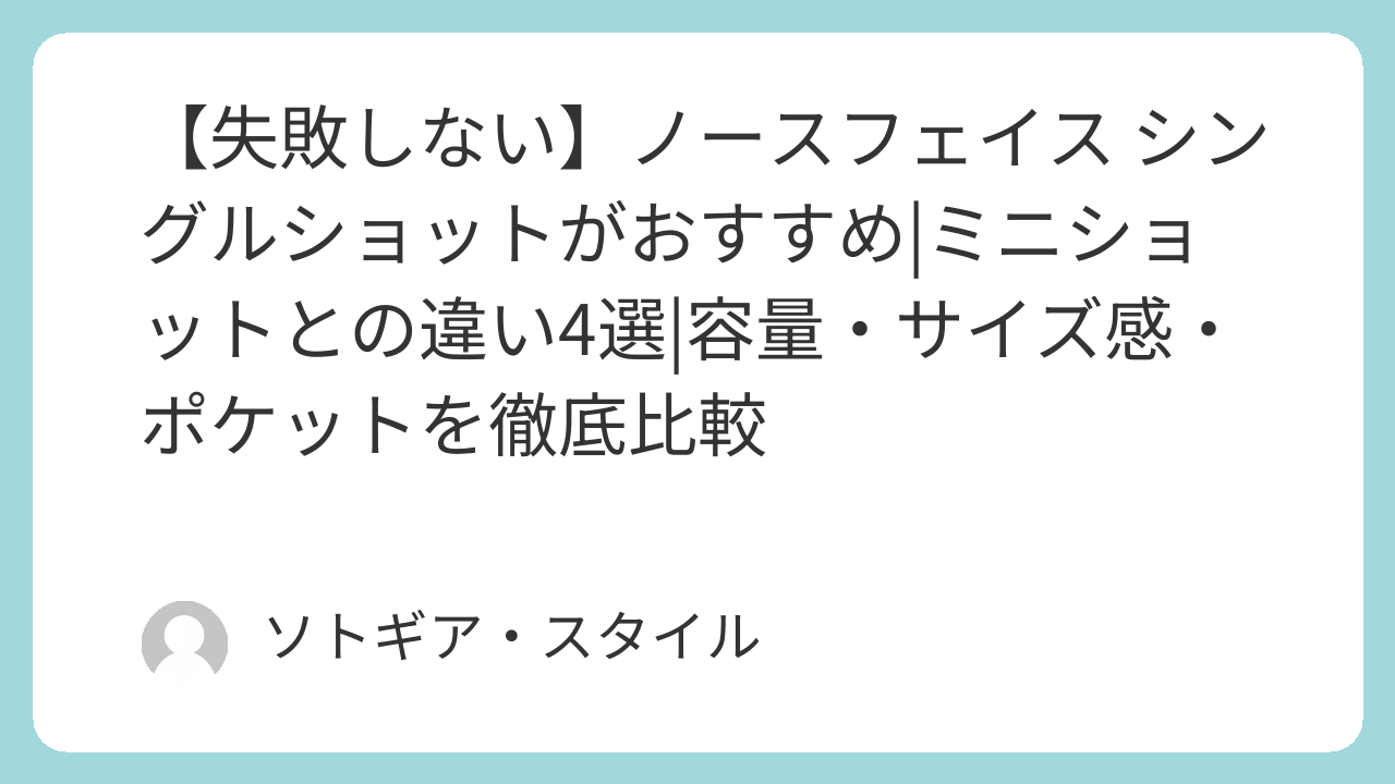 こんにちは、セーフです。アウトドア用品を紹介するブログ「ソトギア・スタイル」を運営しながら、日々さまざまなギアを研究しています。今回は、ノースフェイスの小型リュックとして人気のシングルショットとミニショットを徹底的に比べてみました。特に、容量やサイズ感、ポケットの違いに焦点を当て、後悔しない選び方を考えます。