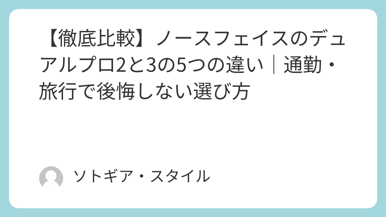 ノースフェイスの人気リュック、デュアルプロ2と3の違いを徹底比較しました。サイズや容量はほぼ同じですが、素材感や細部のデザインが異なり、使い心地に差が生まれます。この記事で解説したポイントを押さえることで、あなたの使い方に最適なモデルがどちらか明確になります。