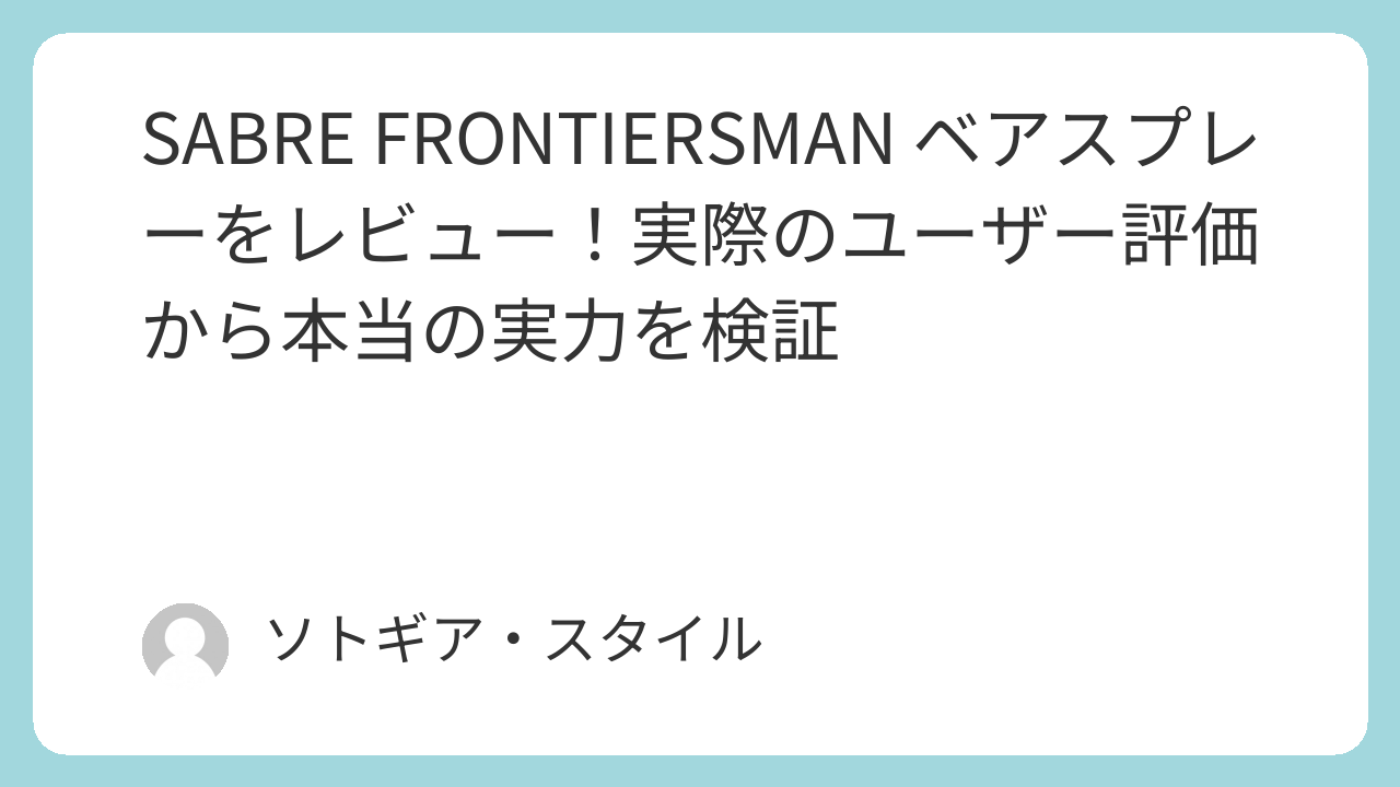 こんにちは、セーフです。登山やキャンプで熊対策が必要な場面は増えてきていますよね。そんなときに活躍するのが熊よけスプレーです。今回ご紹介する「SABRE FRONTIERSMAN ベアスプレー」は、高圧ガスで長距離噴射を実現したアメリカ製の熊よけスプレー。「軽くて持ち運びしやすい」という評判がある一方で、「噴射時間が短めなのが気になる」といった口コミも存在するため、購入を迷っている方も多いのではないでしょうか。